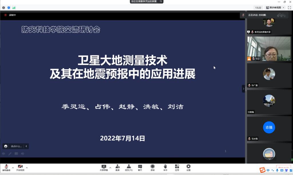 会上,季灵运研究员做了题为“卫星大地测量技术及其在地震预报中的应用进展”的学术报告。季灵运研究员通过大量丰富的国内外案例,从大地测量技术地震行业应用进展、地震预报业务应用进展、大地测量与地下流体研究断层活动实例三个方面介绍了GNSS/INSAR技术在地震研究中的前沿进展。报告结束后,支部党员教师和同学们就专业知识方面的疑问,与季老师进行了热烈的讨论。